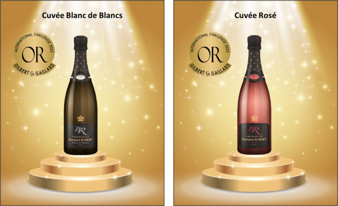 Nous sommes fiers de vous annoncer nos deux médailles d’Or, à l’international challenge Gilbert et Gaillard 2025, pour les cuvées Rosé et Blanc de Blancs.